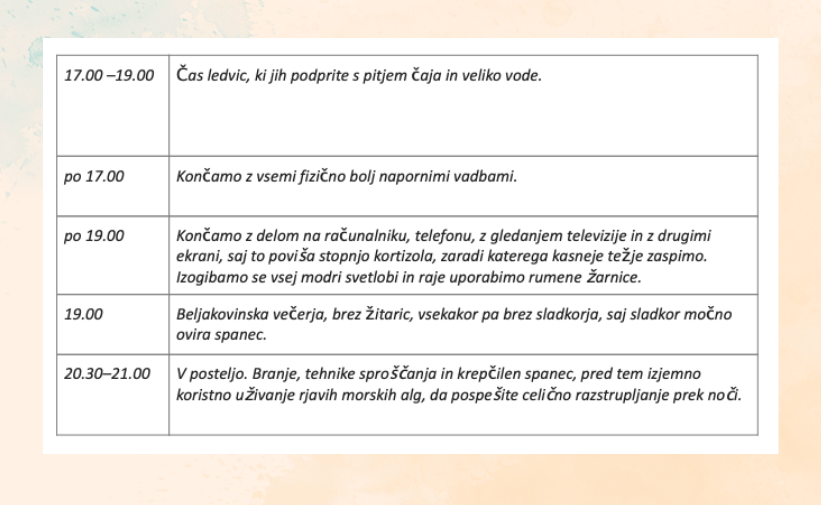Spanje je temelj našega zdravja. Ko imamo postavljene temelje, lahko stabilno zgradimo preostale tri ključne stebre: zdravo prehrano, optimalno gibanje in upravljanje s stresom. Nekvaliteten spanec je eden izmed glavnih razlogov, zakaj hormoni začnejo delovati prosto po Prešernu in povzročajo neravnovesja v telesu, kar vodi v razna obolenja in celo v zelo resne bolezni. Ponoči poteka regeneracija celotnega telesa, čistijo se možgani, tvoriti pa se mora zadostna količina melatonina, ki je bistvenega pomena za hormonsko ravnovesje.