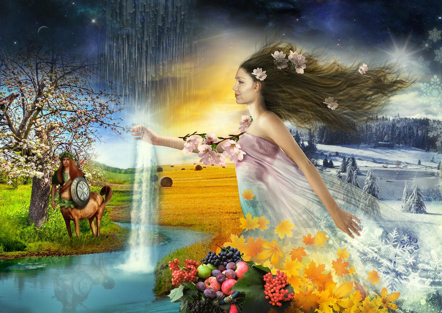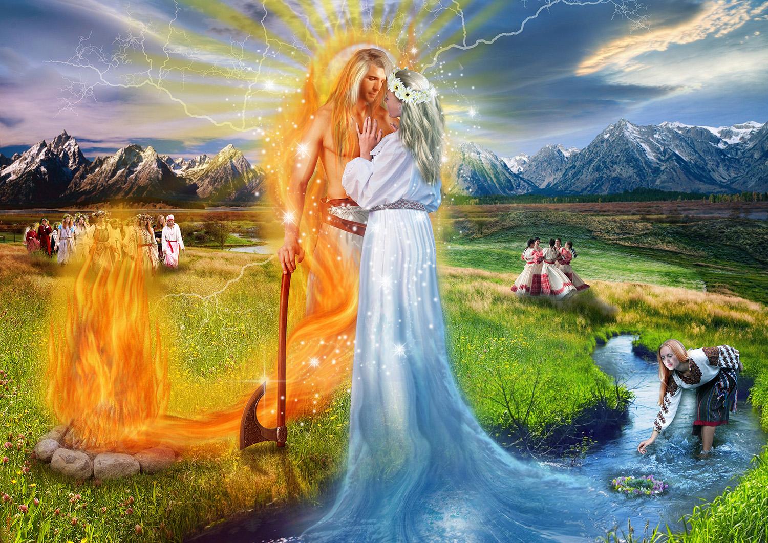 Pomlad velja za začetek novega leta, ko gromovnik Perun s svojo strelo oplodi zemljo. Mara in Jarilo pa se dvigata iz podzemlja ter pričneta nov rodni cikel. Jarila oz. Jarnika srečamo kot ostanek prastare tradicije v Zelenem Juriju. Poleti srečamo sonce ob največji moči, ko praznujemo tudi sveto poroko med nebom in zemljo. Jeseni se Mara spremeni v Morano in se z zemlje preseli v nebo. Poskrbi, da se umirimo, očistimo ter se znamo uspešno pogovoriti s seboj. Zemljo odpelje počivat, da lahko na nov cikel zopet rodi. V mrzlem delu leta vlada podzemni Veles, bog modrosti, magije, zaščitnik živali, umetnosti, gospodar volkov.