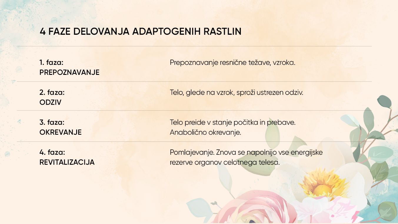 1. V telesu sprožijo nespecifičen odziv: telesu priskočijo na pomoč pri odzivu na širok spekter stresorjev, kar spodbuja splošno ravnovesje in stabilnost.