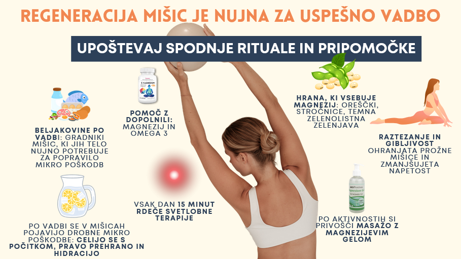 Brez pravilne regeneracije mišic po naporih bomo oškodovali svoje telo! Izjemno pomemben je, da mišičnim vlaknom omogočimo sproščanje po kontrakciji in tako preprečimo zakrčenosti in boleče krče. Podpreti pa moramo tudi energijski metabolizem v celicah in zmanjšati količino kopičenje mlečne kisline, da bo telo lažje okrevalo.