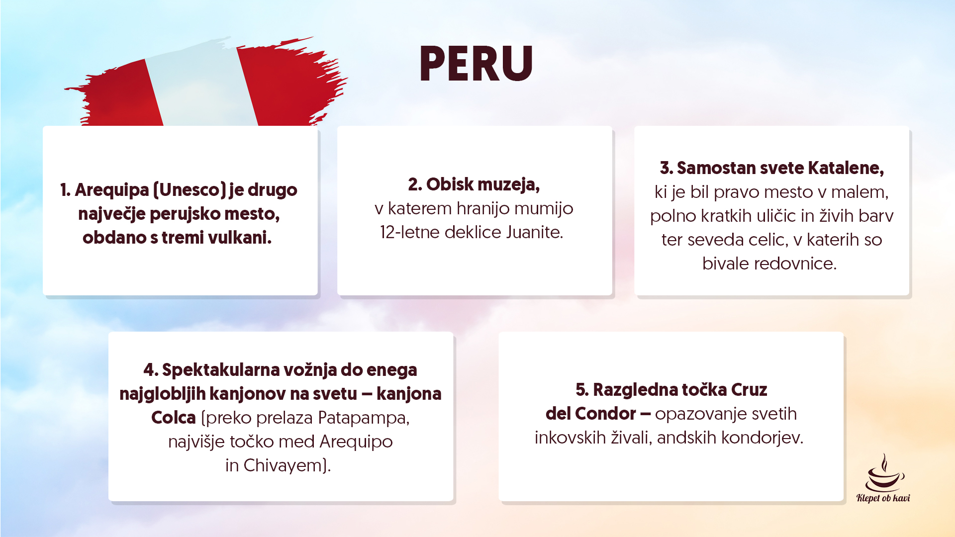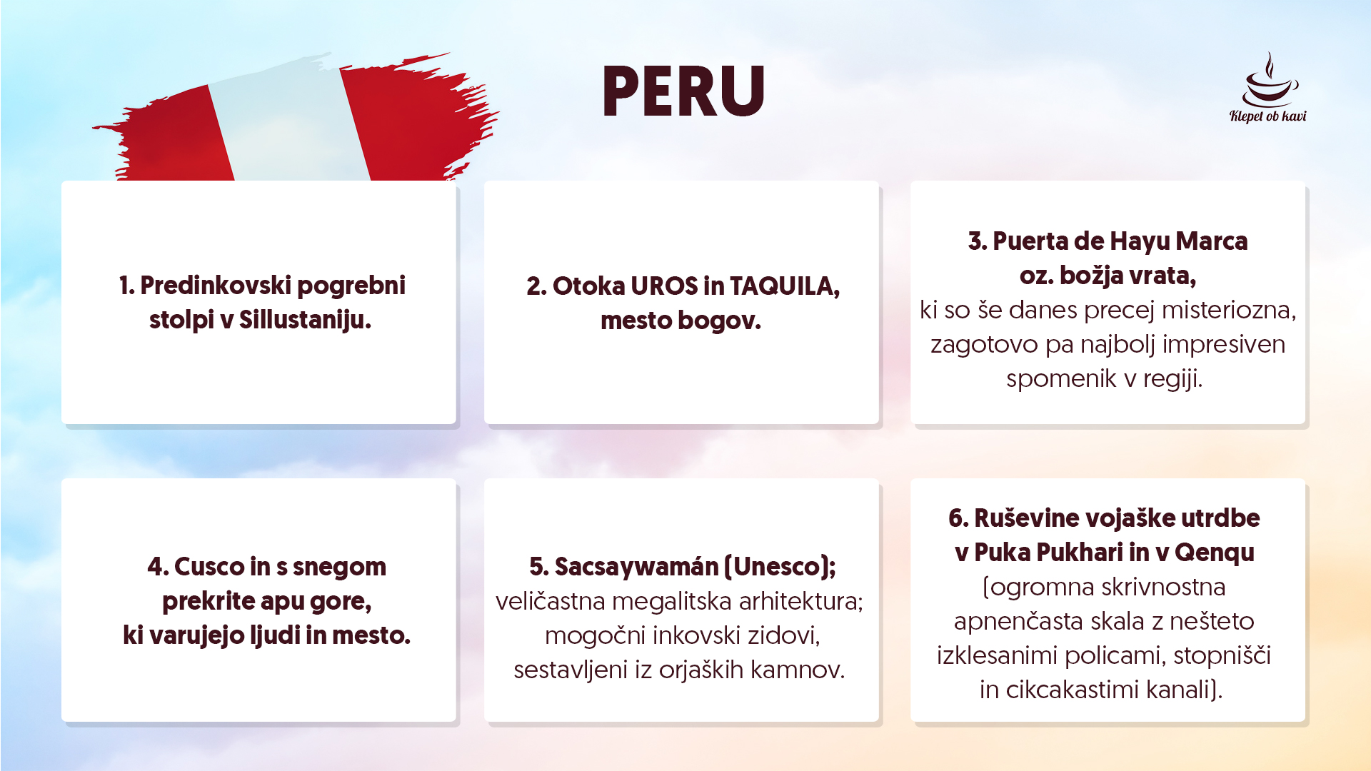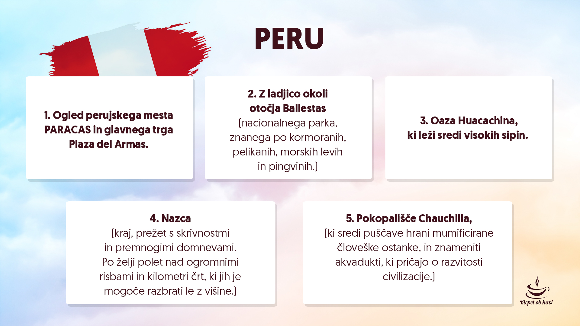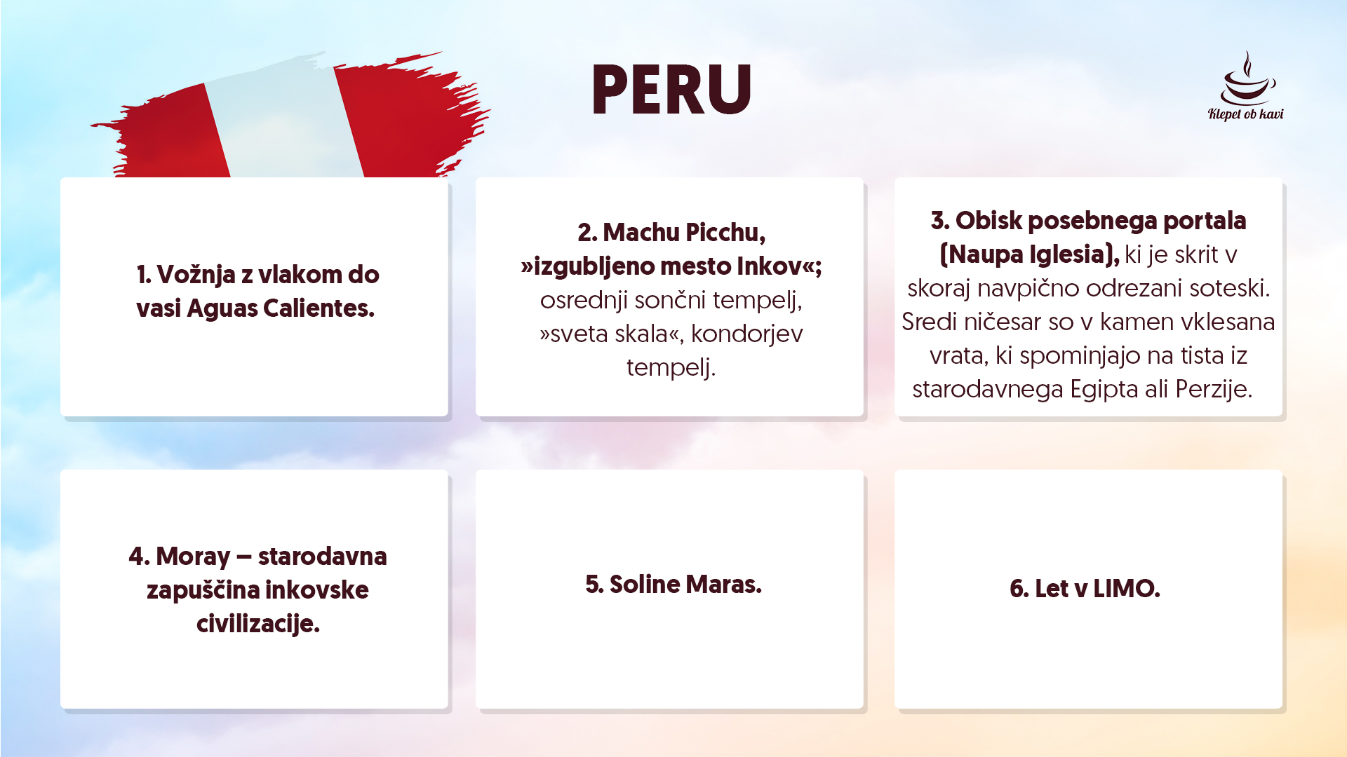 In Peru je letos tudi na programu potovanj, ki jih organizira Klepet ob kavi. Vabljeni, da se nam pridružite!