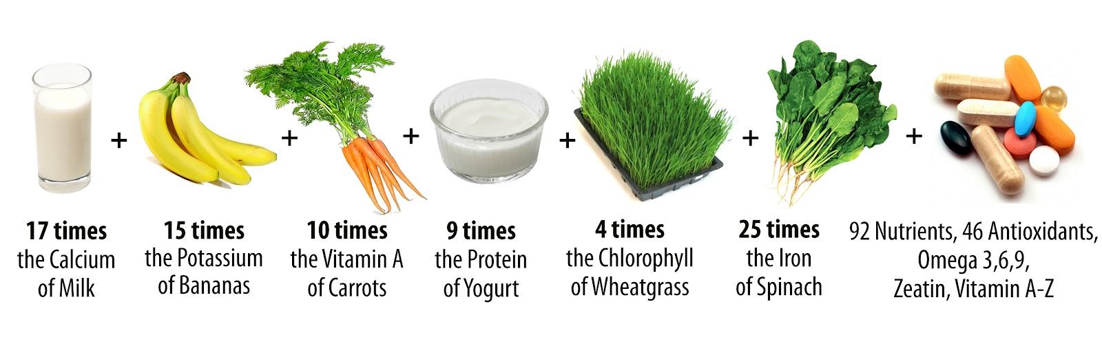 Tudi, če danes zdravo jemo, še ne pomeni, da ima telo zadostno mero vseh snovi. Problem je hrana v trgovinah, saj ne vemo od kod prihaja. Tudi, če gojimo zelenjavo v vrtu, lahko pride do pomankanja zaradi same kakovosti zemlje. Prav tako nam prebavni trakt dela drugače, če smo pod stresom ali psihično nestabilni, kjer se porabljajo druge snovi in tako pride hitro do pomankanja določenih snovi. Tu nam na pomoč priskoči moringa! Že pri majhnem pakiranju dobimo veliko več; kar 7 krat več C vitamina kot pri limonah, 25 krat več železa kot v špinači in 10 krat več betakarotena kot v korenju.