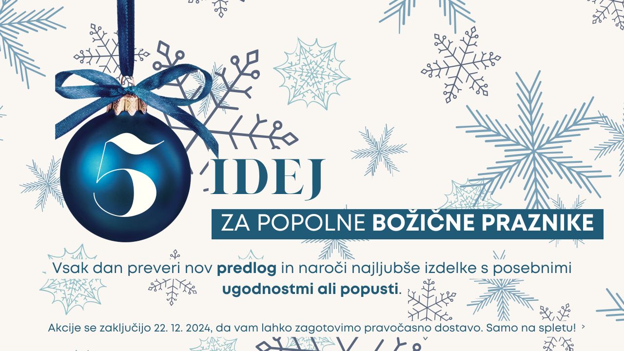 Vsak dan bomo razkrili nov predlog in ugodnost, vsi predlogi v naslednjih petih dneh pa bodo veljali do 22. 12. 2024. To takrat boste lahko kupovali teh 5 izdelkov ugodneje, mogoče pa pripravimo še kakšno presenečenje za konec tedna. Tako bodo izdelki lahko pri vas pravočasno za praznike.