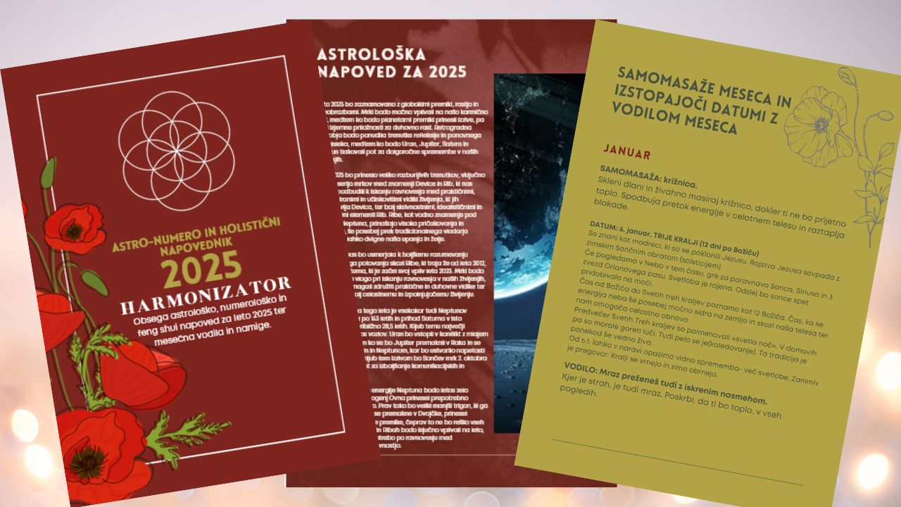 Energije in znanje so združili vaši najljubši strokovnjaki na tem področju, ki jih lahko mesečno spremljate tudi v rubriki Energije meseca. Dušan Jimmy Doblanovič, Lili Sorum in Darja Furek. Nastal je pravi mali vodnik za leto 2025, na kar 37 straneh, ki vam bo razkril astrološko in numerološko napoved, lunine skrivnosti in vam ponudil holistične napotke, kdaj in kako poskrbeti za svoje telo.
