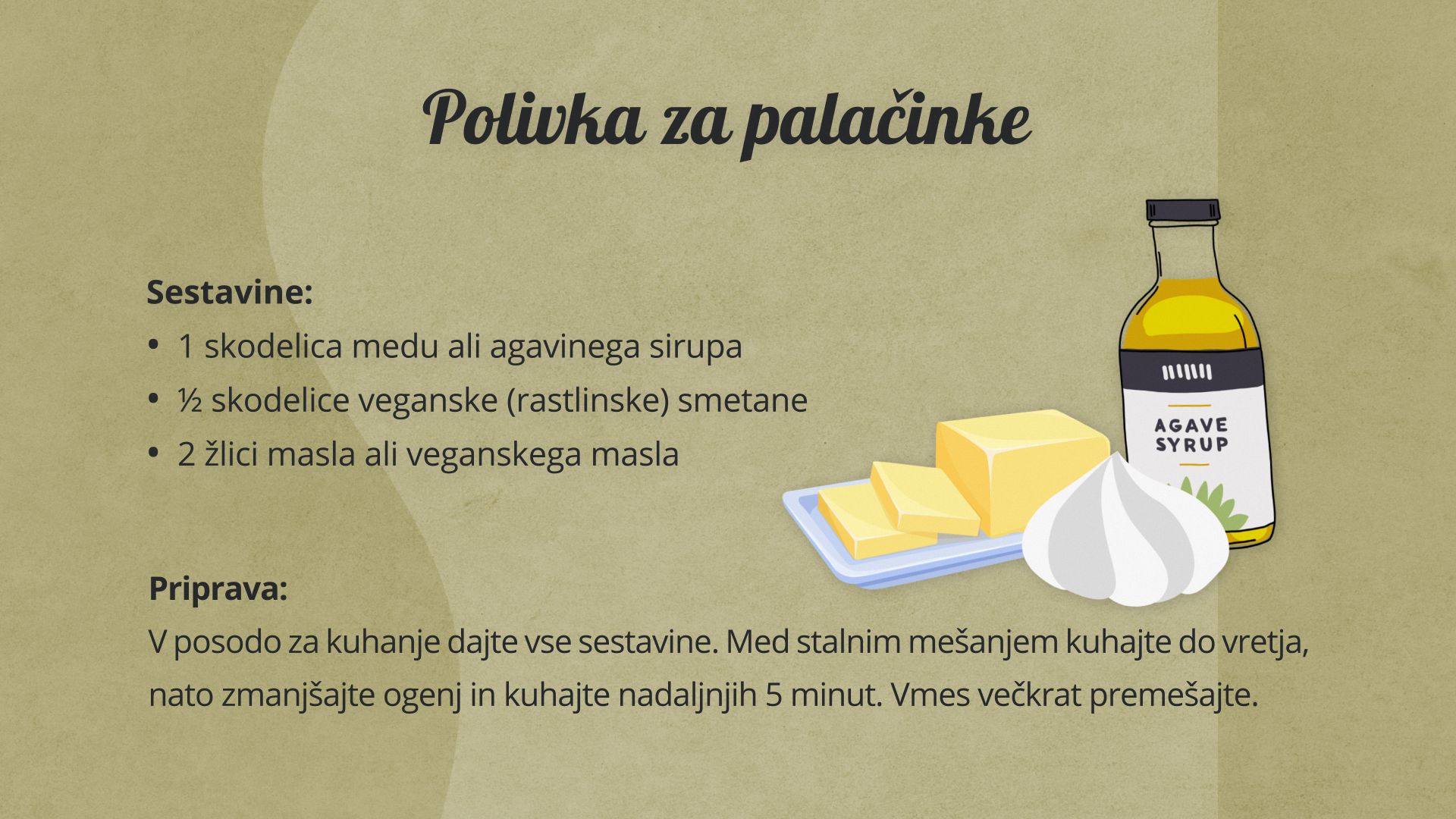 Omako lahko postrežete tudi z slanimi jedmi (kot so bučni ravioli, pečen sladki krompir, pečena zelenjava) ali pa jo uporabite kot polivko za solate.