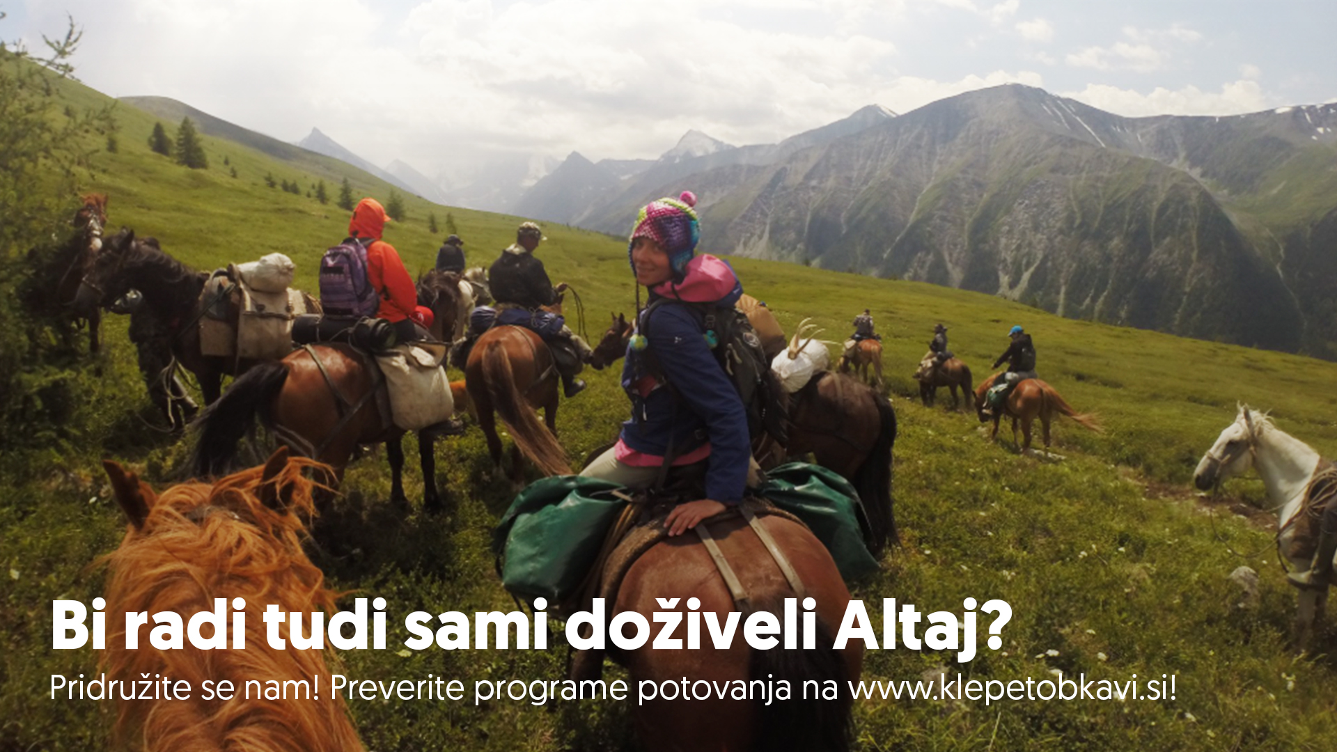 Potovanje na Altaj je sicer potovanje v srce matere Zemlje, kot temu področju pravijo Altajci, obenem pa je tudi potovanje k svojemu lastnemu bistvu. S platoja Ukok in Belovodja pod Beluho se vsak vrne drugačen – kot da bi prišel iz Šambale. Bi torej potovali z nami na Altaj? Preverite nove programe potovanj za 2019 na www.klepetobkavi.si ali 02 6200 230!