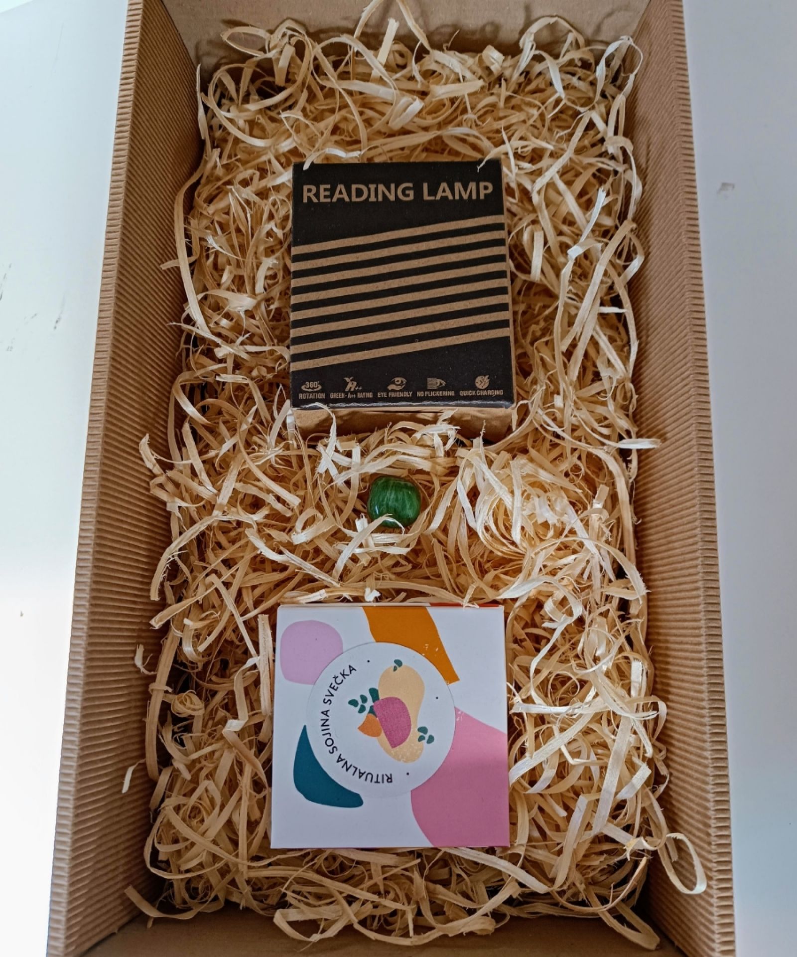 Poslovno darilo z občutkom harmonije, sprostitve in notranjega ravnovesja. Paket vsebuje jantarjevo nočno bralno lučko, ki varuje vaše oči in izboljšuje kakovost spanja, sojino ritualno svečko (bela) za meditacijo in prepuščanje, ter kristal žad, simbol stabilnosti in varnosti.