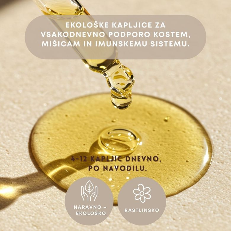 Ekološko olje z vitaminom D3 (laneno olje + veganski D3 iz lišajev) in vitamin K2 (menaquinon-7 iz natto) je pripravljeno z mislijo na naravno podporo imunskemu sistemu, kostem in mišicam, brez umetnih dodatkov ali konzervansov.