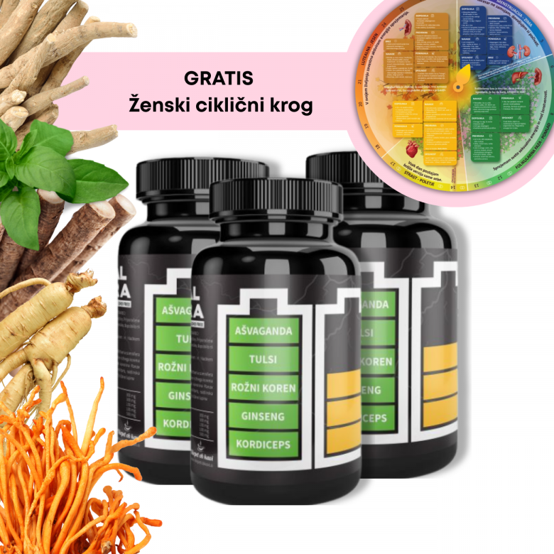 3x Adrenal podpora – s 5 adaptogeni + darilo Ženski ciklični krog