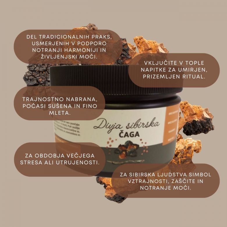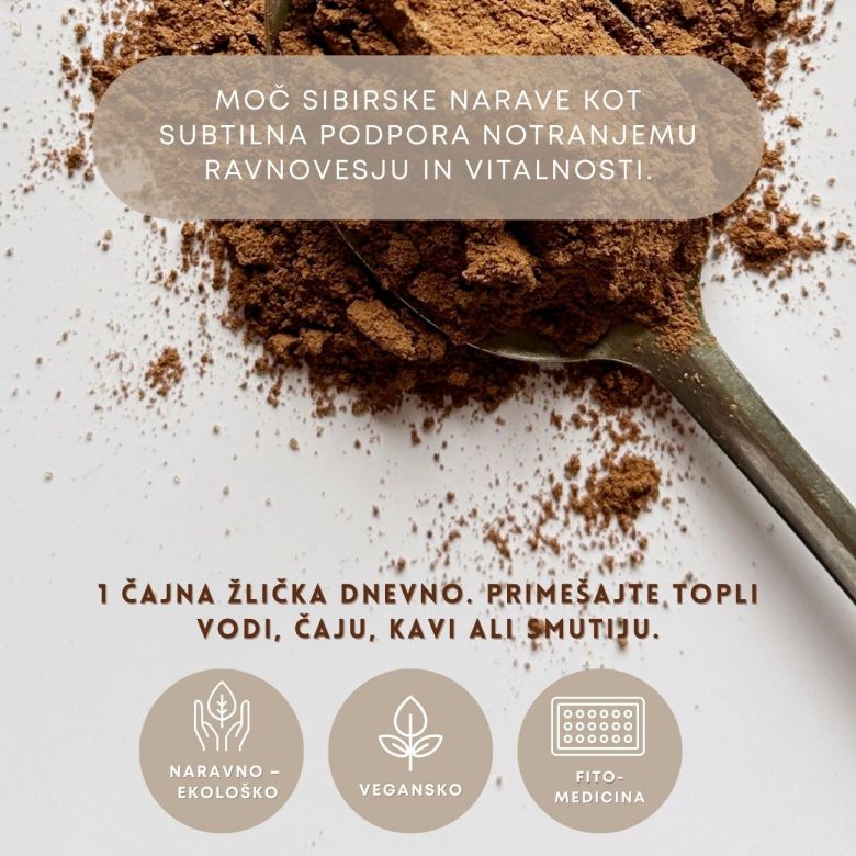 Vdihnite moč sibirske narave v svojo dnevno rutino. Ekološka in ročno nabrana čaga, zmleta v fin prah, prinaša pristen dotik brezovih gozdov. Tradicionalno cenjena kot “dar brezovega drevesa”, danes znova zaživi kot subtilna podpora notranjemu ravnovesju in vitalnosti.